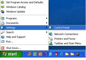 - Click Start, then settings, and then Control Panel.
